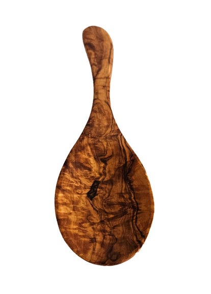 Handgefertigte Gewürzschaufel aus rustikalem Olivenholz! Einmalig behandelt mit Bienenwachs, um sein Aussehen und seinen natürlichen Geruch zu erhalten.