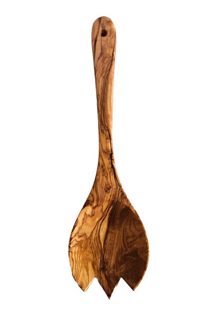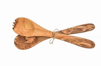 Handgefertigtes Salat-Besteck 2-tlg aus rustikalem Olivenholz! Einmalig behandelt mit Bienenwachs, um sein Aussehen und seinen natürlichen Geruch zu erhalten.