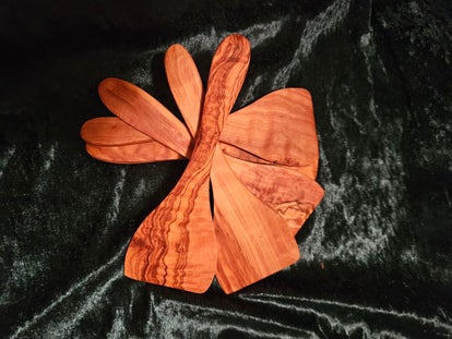 Handgefertigte Raclette Spachtel aus rustikalem Olivenholz! Einmalig behandelt mit Bienenwachs, um sein Aussehen und seinen natürlichen Geruch zu erhalten.