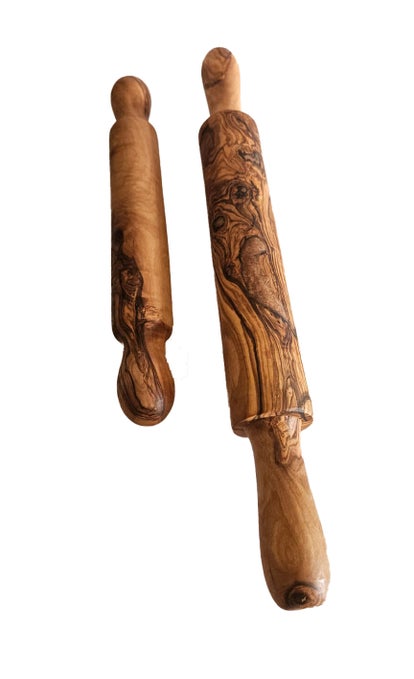 Handgefertigter Teigroller/Nudelholz aus einem rustikalen Olivenbaumstamm! Einmalig behandelt mit Bienenwachs, um sein Aussehen und seinen natürlichen Geruch zu erhalten.