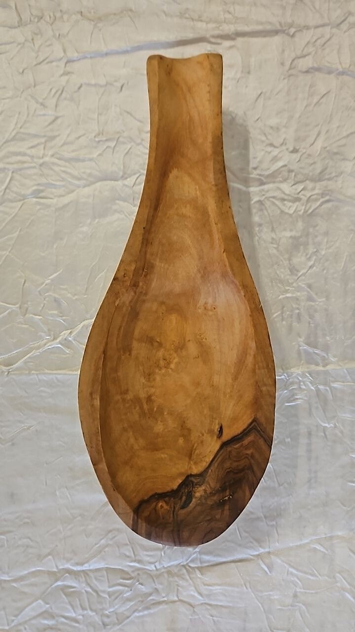 Handgefertigtes Knoblauch-Geschirr aus einem rustikalen Olivenbaumstamm! Einmalig behandelt mit Bienenwachs, um sein Aussehen und seinen natürlichen Geruch zu erhalten.