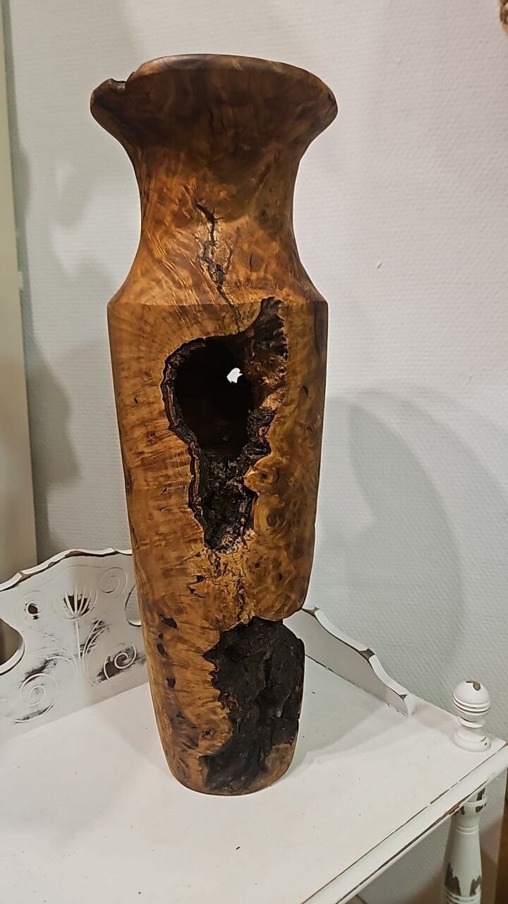Handgefertigte Vase aus einem rustikalen Olivenbaumstamm! Einmalig behandelt mit Bienenwachs, um sein Aussehen und seinen natürlichen Geruch zu erhalten.